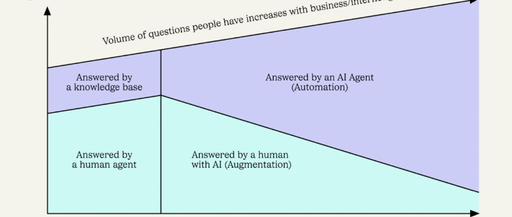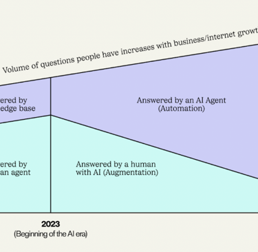 Η Gen AI σηματοδοτεί την αρχή μιας νέας εποχής στην εξυπηρέτηση πελατών, όπου οι πράκτορες ΤΝ μπορούν αυτόνομα να χειριστούν ένα σημαντικό μέρος των αλληλεπιδράσεων με τους πελάτες. Αυτή η μετατόπιση απεικονίζεται στην παρεχόμενη εικόνα, η οποία δείχνει τη μετάβαση από την ανθρώπινη καθοδήγηση στην υποστήριξη πελατών που βασίζεται στην ΤΝ.